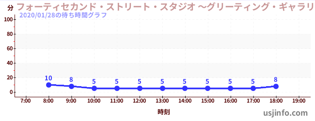 • フォーティセカンド・ストリート・スタジオ ~グリーティング・ギャラリー~ ピーナッツの仲間たち$B$N(B2020年01月28日の待ち時間