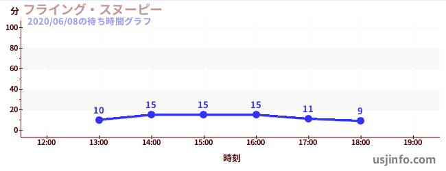 • フライング・スヌーピー$B$N(B2020年06月08日の待ち時間
