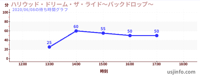 • ハリウッド・ドリーム・ザ・ライド〜バックドロップ〜$B$N(B2020年06月08日の待ち時間