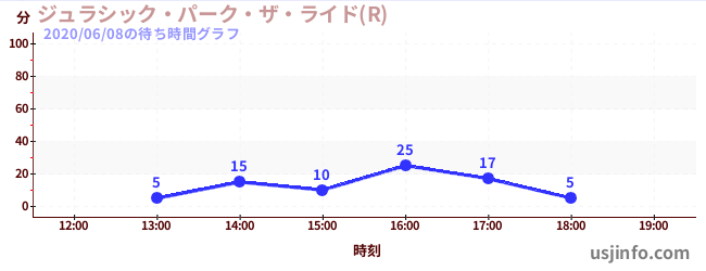 • ジュラシック・パーク・ザ・ライド(R)$B$N(B2020年06月08日の待ち時間