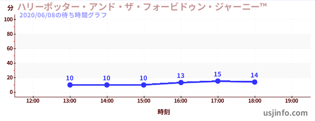 • ハリーポッター・アンド・ザ・フォービドゥン・ジャーニー™$B$N(B2020年06月08日の待ち時間