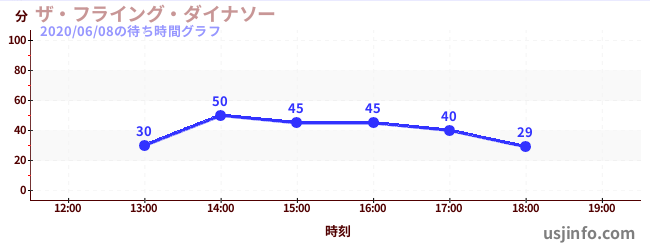 • ザ・フライング・ダイナソー$B$N(B2020年06月08日の待ち時間