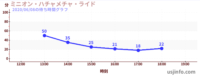 • ミニオン・ハチャメチャ・ライド$B$N(B2020年06月08日の待ち時間