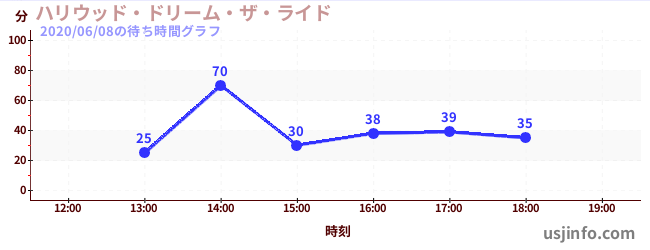 • ハリウッド・ドリーム・ザ・ライド$B$N(B2020年06月08日の待ち時間