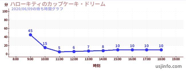 • ハローキティのカップケーキ・ドリーム$B$N(B2020年06月09日の待ち時間