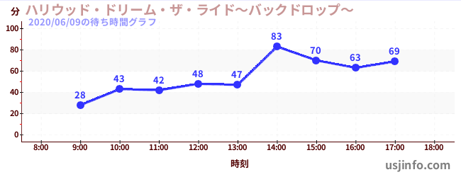 • ハリウッド・ドリーム・ザ・ライド〜バックドロップ〜$B$N(B2020年06月09日の待ち時間