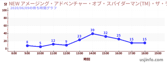 • NEW アメージング・アドベンチャー・オブ・スパイダーマン(TM)・ザ・ライド 4K3D$B$N(B2020年06月09日の待ち時間
