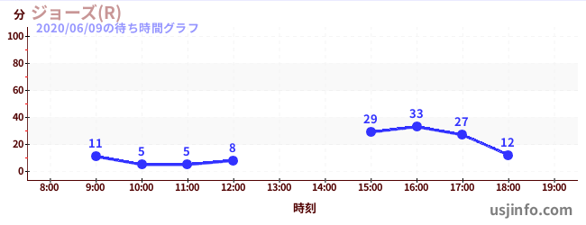 • ジョーズ(R)$B$N(B2020年06月09日の待ち時間