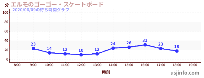 • エルモのゴーゴー・スケートボード$B$N(B2020年06月09日の待ち時間