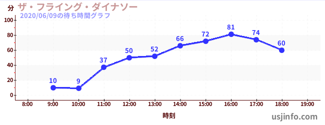 • ザ・フライング・ダイナソー$B$N(B2020年06月09日の待ち時間