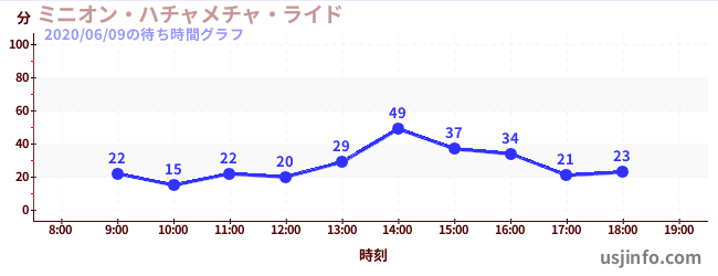 • ミニオン・ハチャメチャ・ライド$B$N(B2020年06月09日の待ち時間