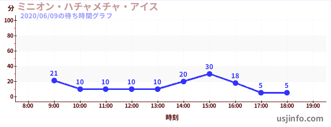 • ミニオン・ハチャメチャ・アイス$B$N(B2020年06月09日の待ち時間
