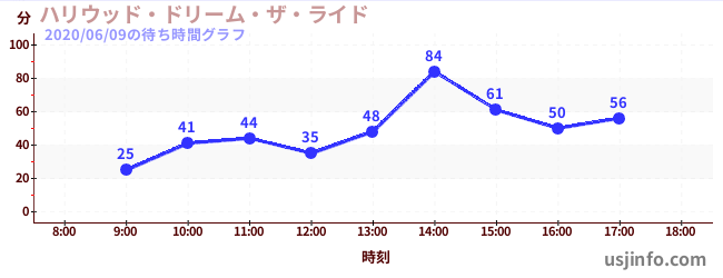 • ハリウッド・ドリーム・ザ・ライド$B$N(B2020年06月09日の待ち時間