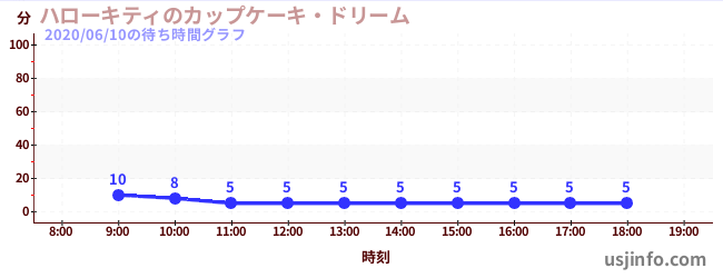 • ハローキティのカップケーキ・ドリーム$B$N(B2020年06月10日の待ち時間