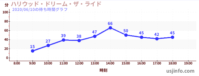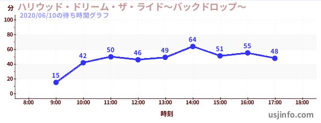 • ハリウッド・ドリーム・ザ・ライド〜バックドロップ〜$B$N(B2020年06月10日の待ち時間