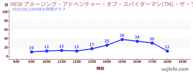 • NEW アメージング・アドベンチャー・オブ・スパイダーマン(TM)・ザ・ライド 4K3D$B$N(B2020年06月10日の待ち時間