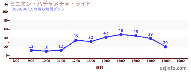 • ミニオン・ハチャメチャ・ライド$B$N(B2020年06月10日の待ち時間