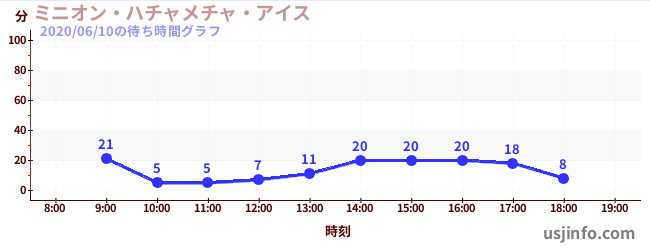 • ミニオン・ハチャメチャ・アイス$B$N(B2020年06月10日の待ち時間