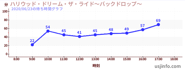 • ハリウッド・ドリーム・ザ・ライド〜バックドロップ〜$B$N(B2020年06月23日の待ち時間