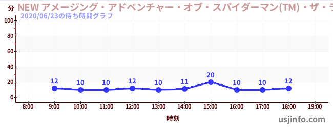 • NEW アメージング・アドベンチャー・オブ・スパイダーマン(TM)・ザ・ライド 4K3D$B$N(B2020年06月23日の待ち時間