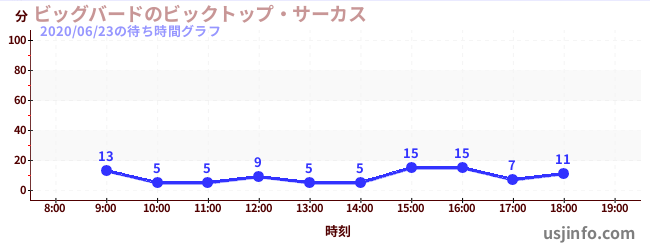 • ビッグバードのビックトップ・サーカス$B$N(B2020年06月23日の待ち時間