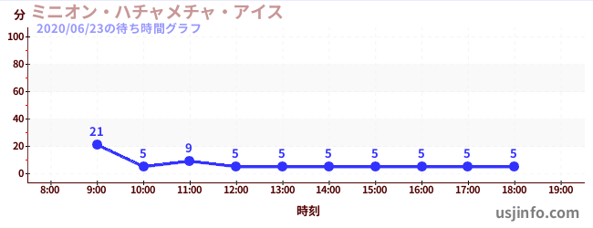 • ミニオン・ハチャメチャ・アイス$B$N(B2020年06月23日の待ち時間