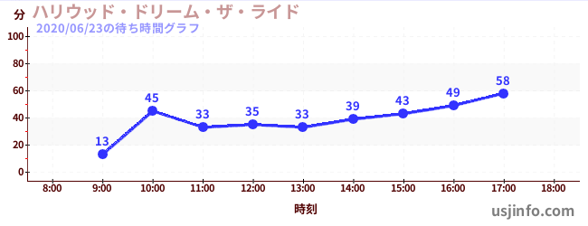 • ハリウッド・ドリーム・ザ・ライド$B$N(B2020年06月23日の待ち時間