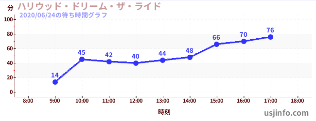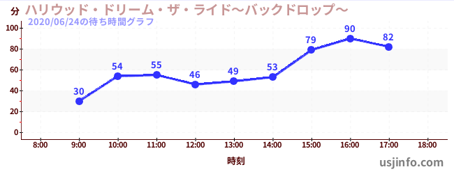 • ハリウッド・ドリーム・ザ・ライド〜バックドロップ〜$B$N(B2020年06月24日の待ち時間