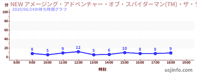 • NEW アメージング・アドベンチャー・オブ・スパイダーマン(TM)・ザ・ライド 4K3D$B$N(B2020年06月24日の待ち時間