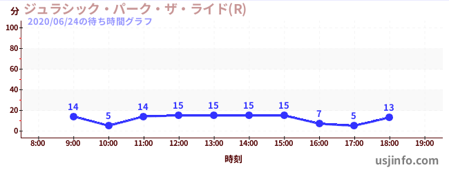 • ジュラシック・パーク・ザ・ライド(R)$B$N(B2020年06月24日の待ち時間