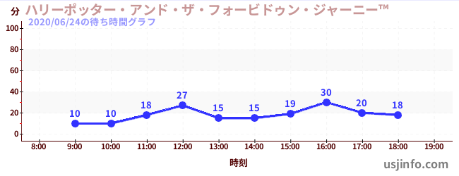 • ハリーポッター・アンド・ザ・フォービドゥン・ジャーニー™$B$N(B2020年06月24日の待ち時間