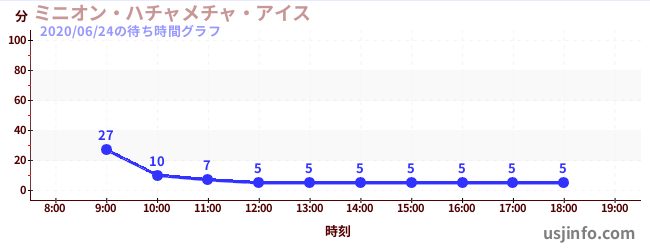 • ミニオン・ハチャメチャ・アイス$B$N(B2020年06月24日の待ち時間