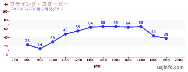 • フライング・スヌーピー$B$N(B2020年06月27日の待ち時間