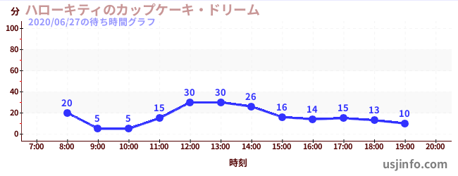 • ハローキティのカップケーキ・ドリーム$B$N(B2020年06月27日の待ち時間