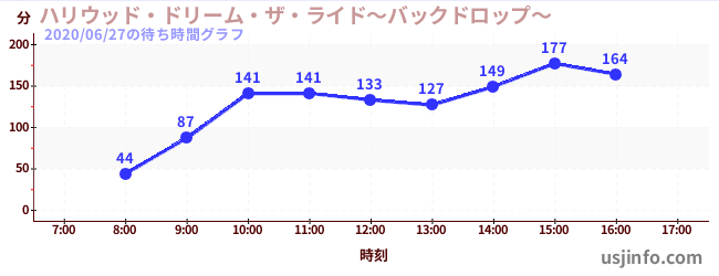 • ハリウッド・ドリーム・ザ・ライド〜バックドロップ〜$B$N(B2020年06月27日の待ち時間