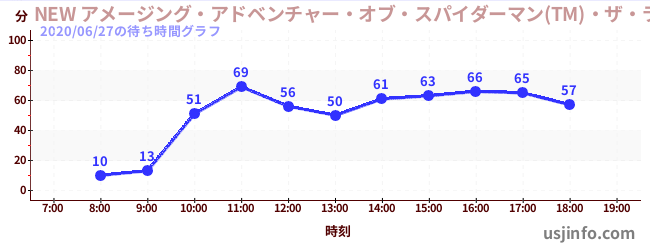 • NEW アメージング・アドベンチャー・オブ・スパイダーマン(TM)・ザ・ライド 4K3D$B$N(B2020年06月27日の待ち時間