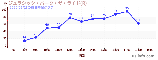 • ジュラシック・パーク・ザ・ライド(R)$B$N(B2020年06月27日の待ち時間
