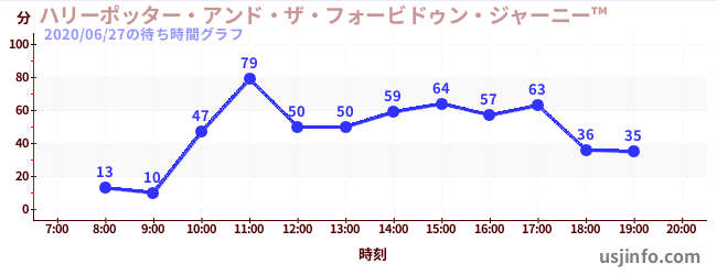 • ハリーポッター・アンド・ザ・フォービドゥン・ジャーニー™$B$N(B2020年06月27日の待ち時間