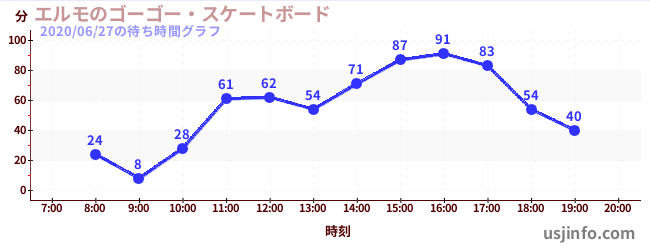 • エルモのゴーゴー・スケートボード$B$N(B2020年06月27日の待ち時間