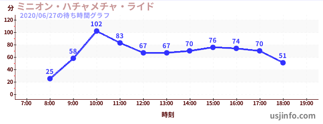 • ミニオン・ハチャメチャ・ライド$B$N(B2020年06月27日の待ち時間