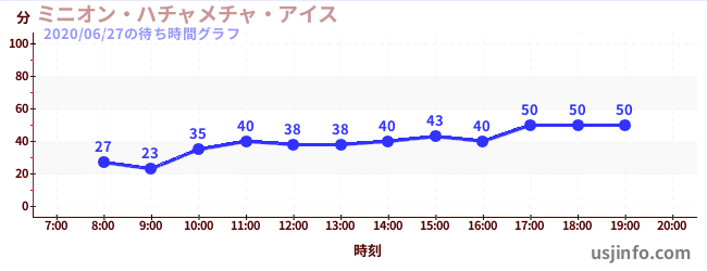 • ミニオン・ハチャメチャ・アイス$B$N(B2020年06月27日の待ち時間