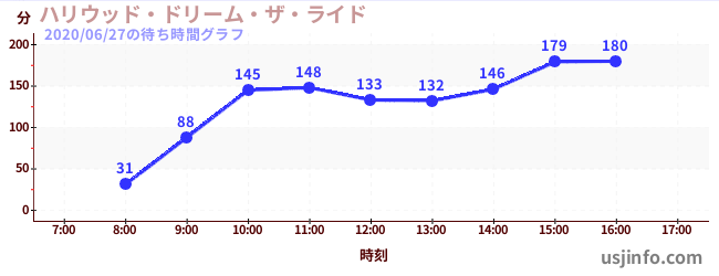 • ハリウッド・ドリーム・ザ・ライド$B$N(B2020年06月27日の待ち時間