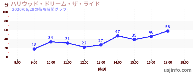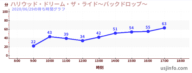 • ハリウッド・ドリーム・ザ・ライド〜バックドロップ〜$B$N(B2020年06月29日の待ち時間