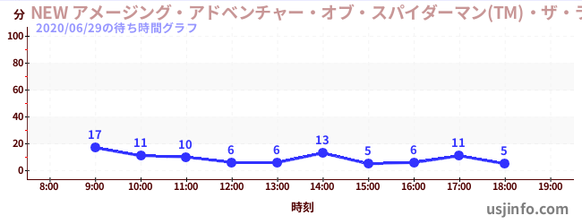 • NEW アメージング・アドベンチャー・オブ・スパイダーマン(TM)・ザ・ライド 4K3D$B$N(B2020年06月29日の待ち時間