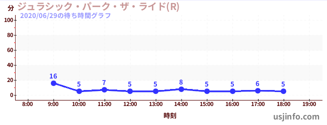 • ジュラシック・パーク・ザ・ライド(R)$B$N(B2020年06月29日の待ち時間