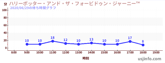 • ハリーポッター・アンド・ザ・フォービドゥン・ジャーニー™$B$N(B2020年06月29日の待ち時間