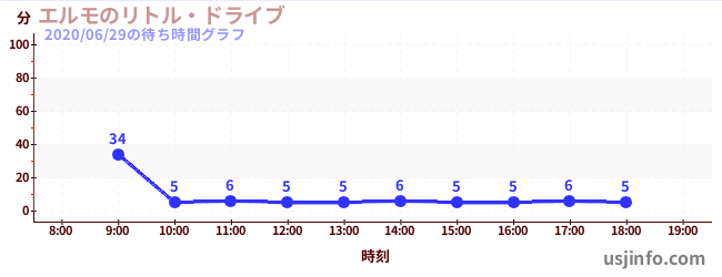 • エルモのリトル・ドライブ$B$N(B2020年06月29日の待ち時間
