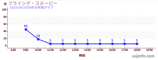 • フライング・スヌーピー$B$N(B2020年06月30日の待ち時間