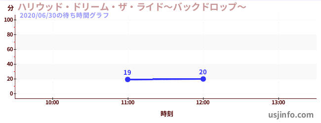 • ハリウッド・ドリーム・ザ・ライド〜バックドロップ〜$B$N(B2020年06月30日の待ち時間