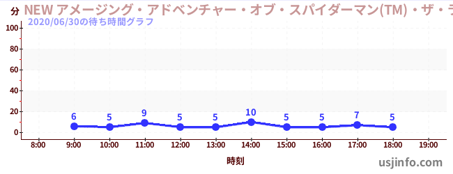• NEW アメージング・アドベンチャー・オブ・スパイダーマン(TM)・ザ・ライド 4K3D$B$N(B2020年06月30日の待ち時間